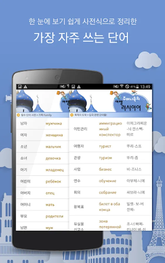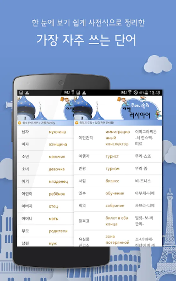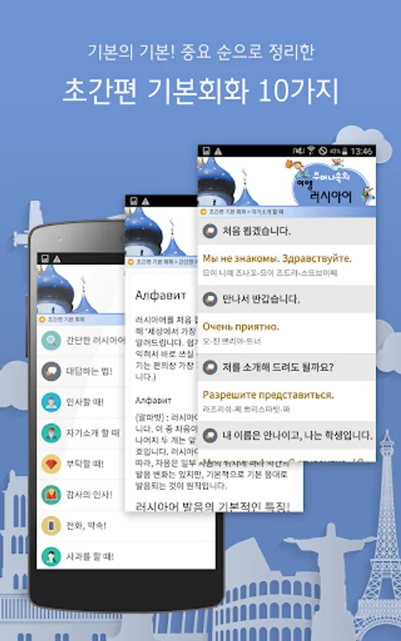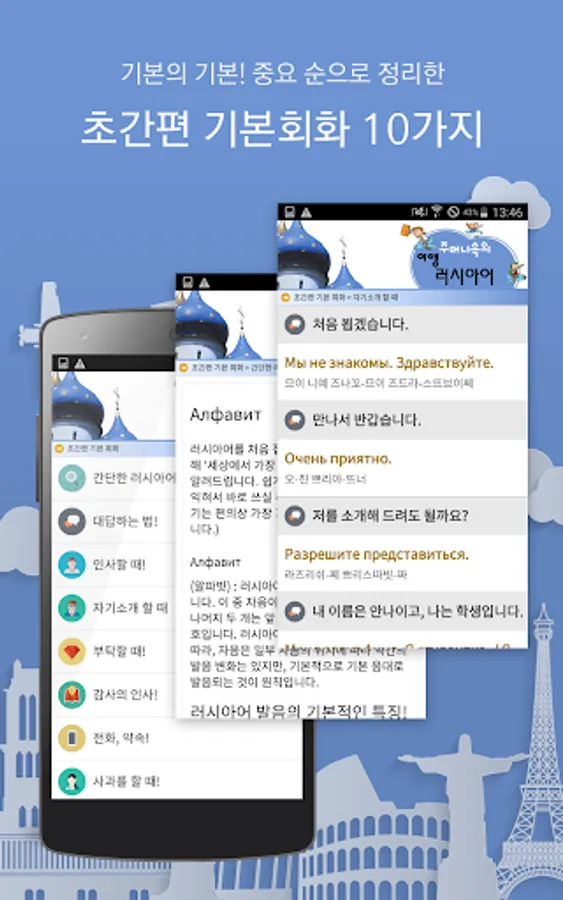 해외 여행자를 위해 가장 확실한 도움을 자랑하는 도서출판 신나라의 여행용 회화책 시리즈 중에 러시아어 회화책입니다. 가장 완벽한 대화 상황과 풍부한 회화 문장으로 비교를 불허합니다.