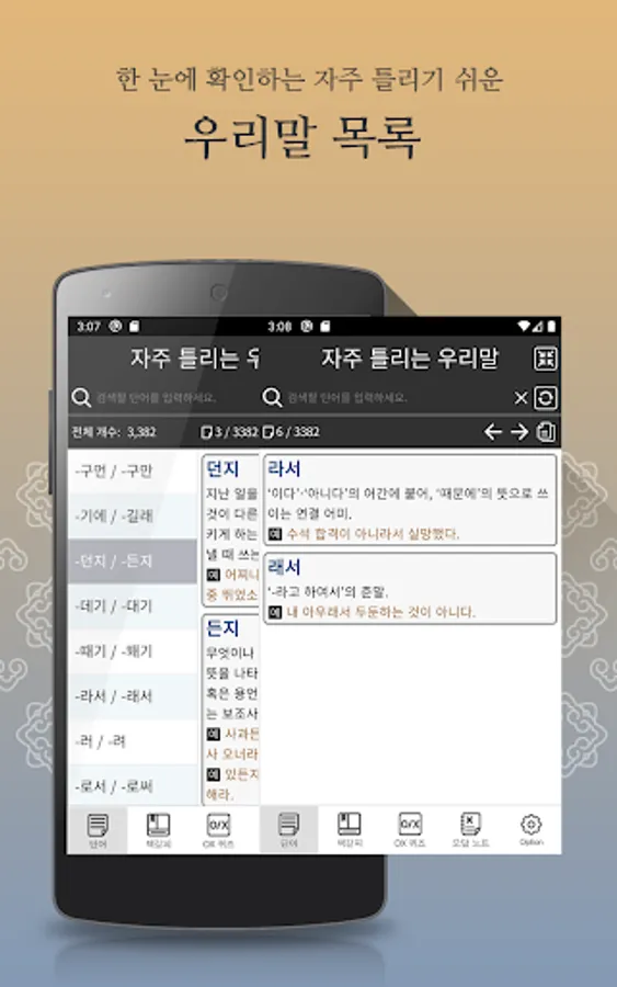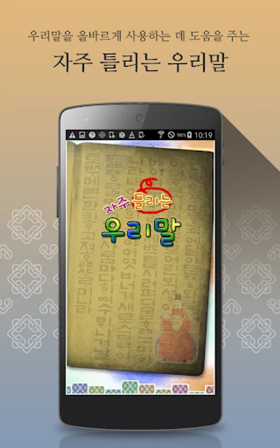 일상생활에서 대화를 하거나, 글을 쓰는 등의 경우에 헷갈리기 쉬운 우리말 표현을 목록화하여 올바른 사용법을 손쉽게 참조할 수 있도록 한 우리말 학습 애플리케이션입니다.