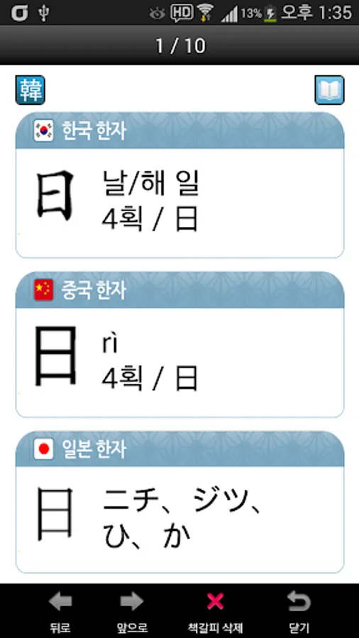 한글 독음 검색, 중국어 병음, 일본어 훈음 검색을 제공하여 쉽고 편리하게 한자 학습이 가능합니다.