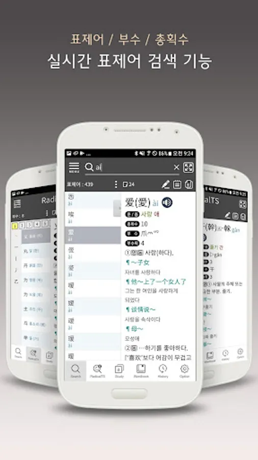 - 중한사전 표제자 뜻풀이 화면에 부수, 잔여획수, 총획수 정보 추가 표시