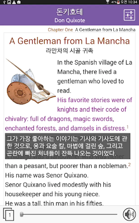 Alonso Kihano, who lived as an ordinary lower-class noble in La Mancha, Spain, began to adventure stories of knights and knights from day one, day and night. He calls himself Don Quixote, gives his old horses the name Rossigna, and then leaves for the knighthood ...