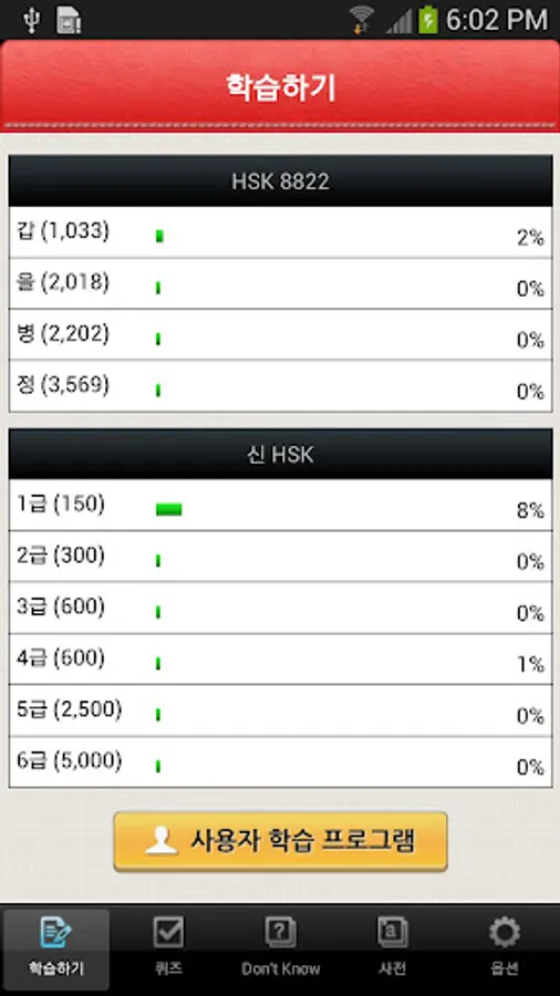 - 신HSK 1~6급, HSK 8822 갑~정 등급 함께 표시