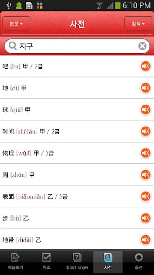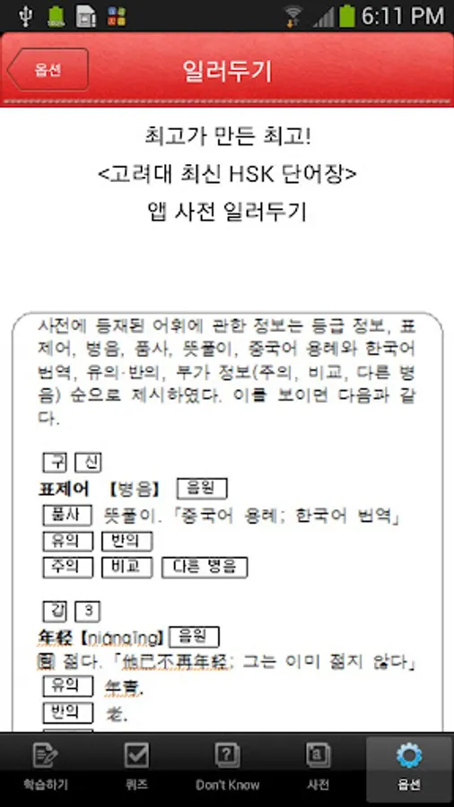 - 뜻풀이, 병음 등의 정보는 기본