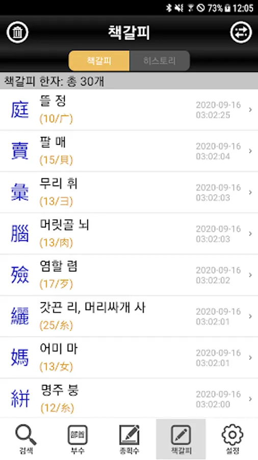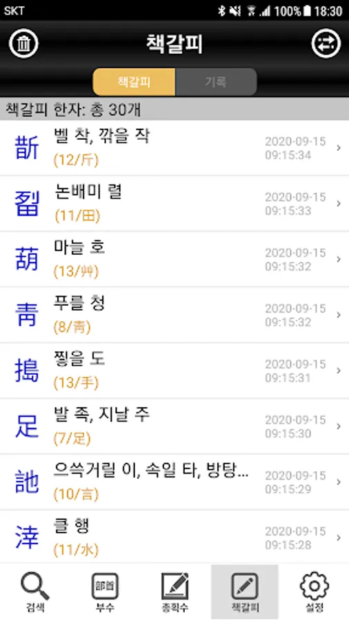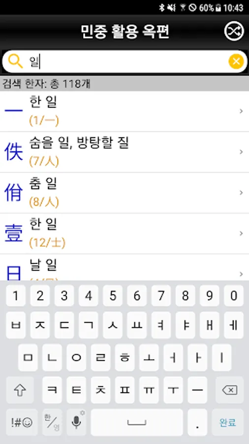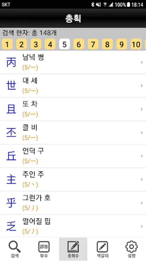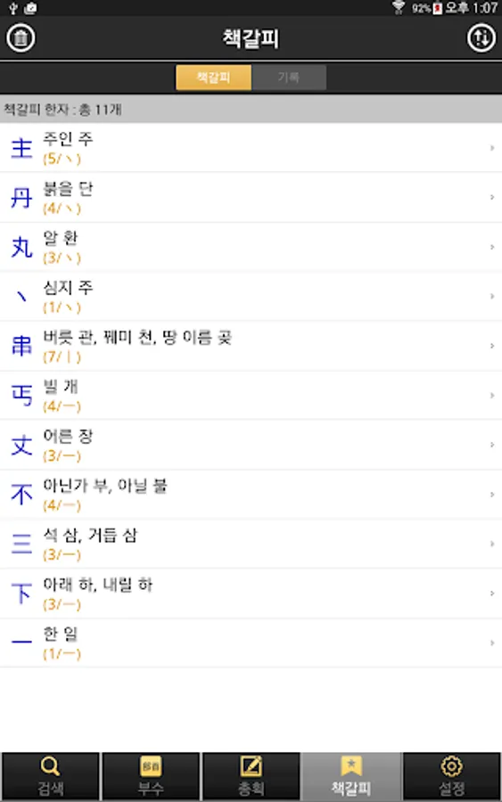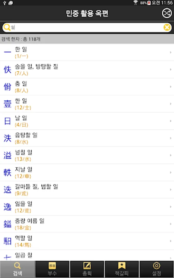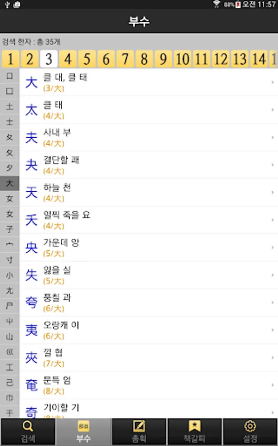 2. 한자 부수/총획수를 이용한 검색 기능 제공