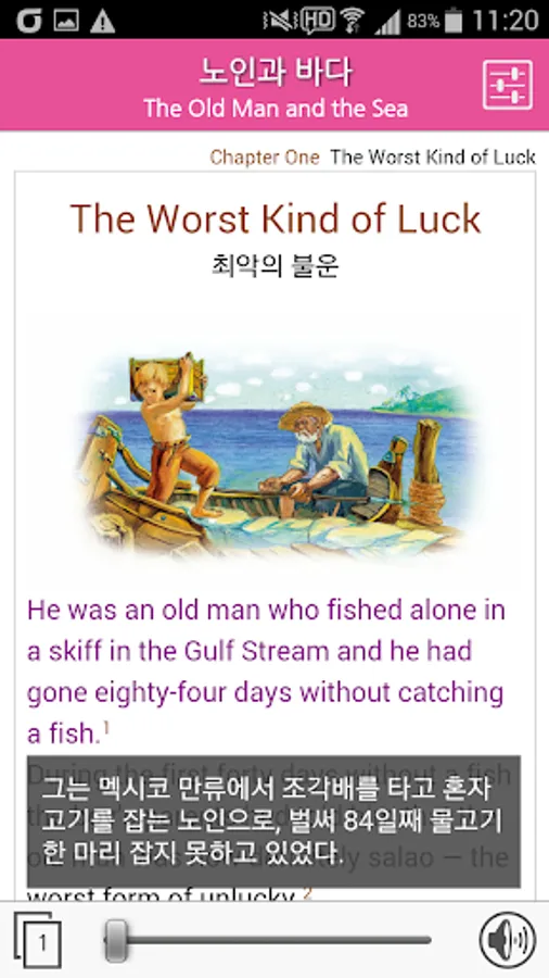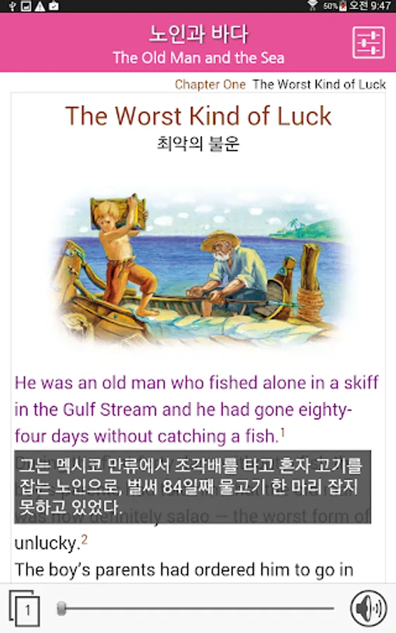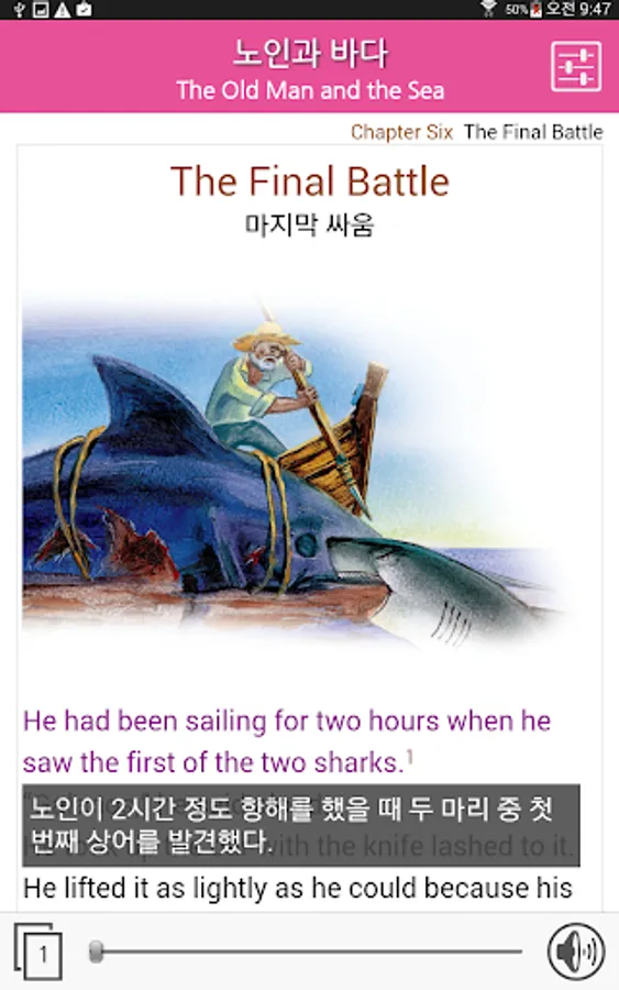 is a novel that intensively expresses the spirit of life that Hemingway, the master of American literature in the 20th century, wanted to portray. An old man who has not caught a single fish for a long time goes out to sea to catch a huge fish, but on the way back from hanging the fish, he meets a shark and rips them all off. It does not contain any great symbols or ideas. It just vividly depicts the happiness that an innocent human gets through tenacious fighting through the figure of an old man who never gives up. Like the old man's monologue, 'Man may die, but not defeated', through the figure of an old man doing his best to catch a fish caught on a fishing line, Hemingway shows that indomitable spirit means eternal victory of the human spirit. have.