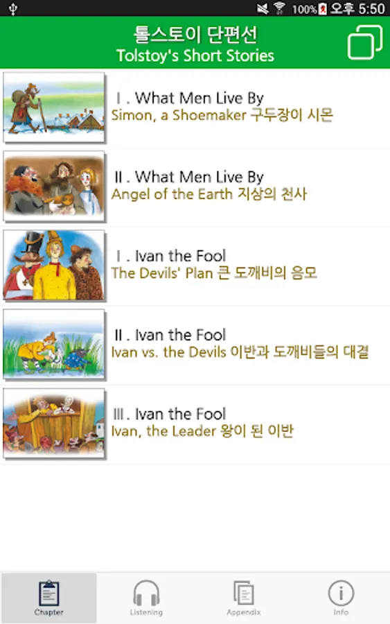 is a stupid but diligent fool Ivan in 1885, expressing his success in defeating two despicable and desperate siblings based on innate sincerity in the form of folk painting. In this work, Tolstoy clearly and simply shows a complete human figure of 'Idiot Ivan'.