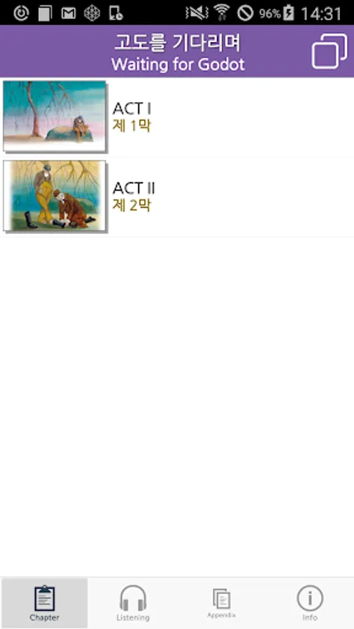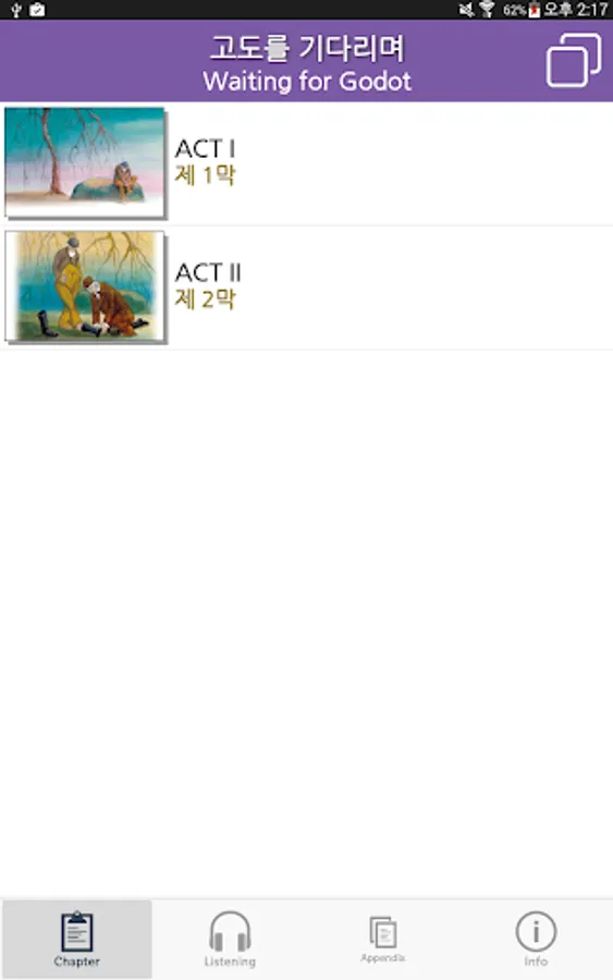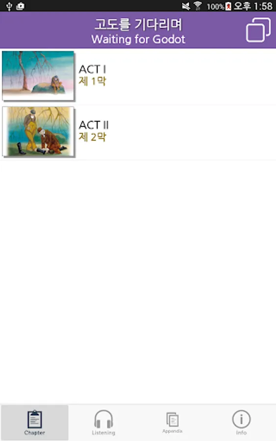 Who is the alternate altitude? What do they wait for Godot? Whether this is a tragedy or a comedy, it is an unpredictable conversation between words. A stage with only one tree. Was this even a play? When the work opened in a small theater in Paris in January 1953, no one expected success. However, the audience was shocked by the new content and format, which is far from the existing realist drama, and the media tried to grasp the specific meaning of the work...