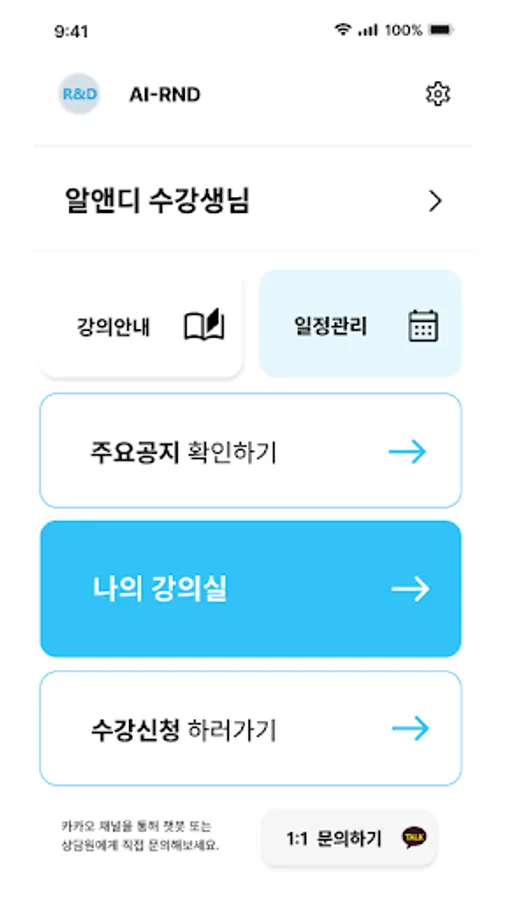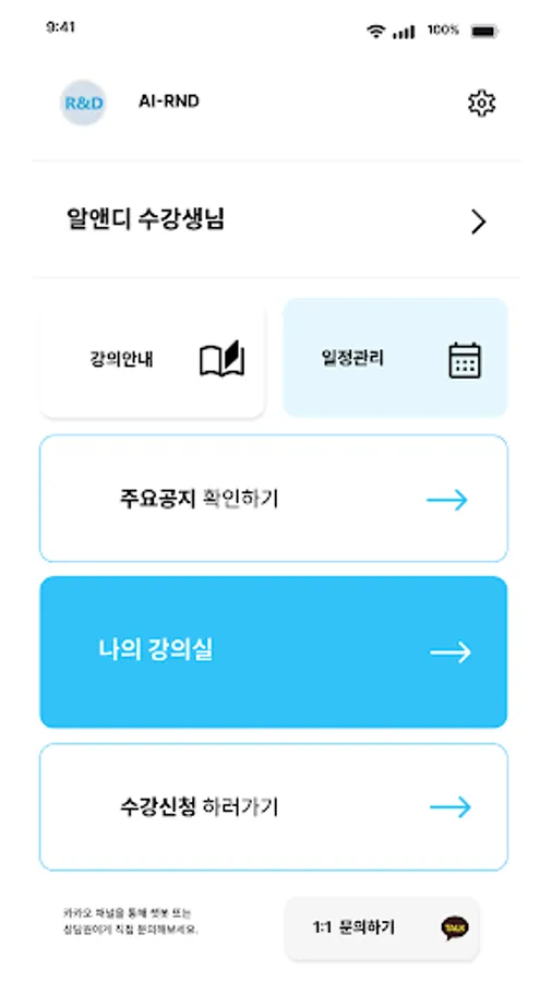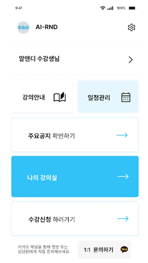 Through the application, you can efficiently manage the schedule of the lectures you are taking, and you can communicate quickly with the administrator through the simple inquiry function.