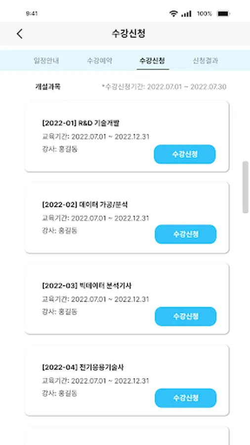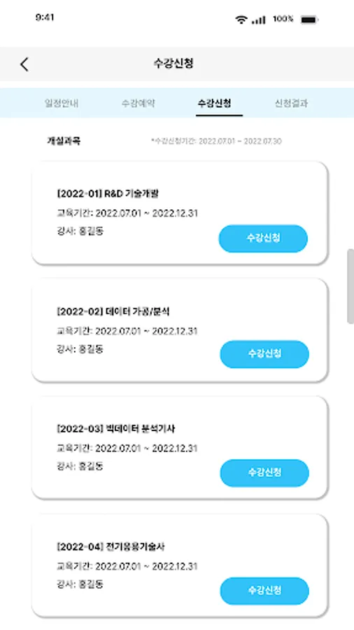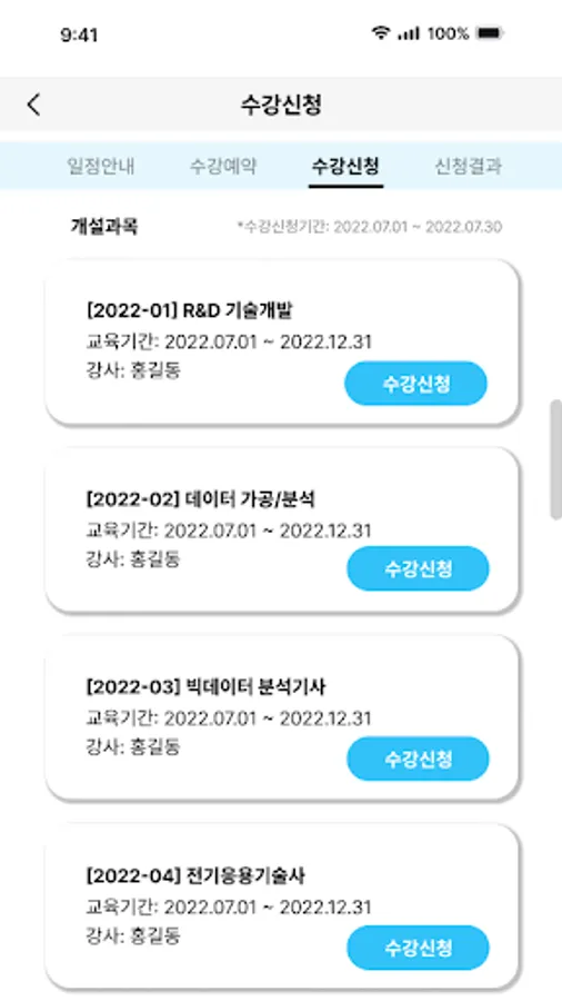 Through this application, you can share lecture information, lecture notices, assignment notices, lecture materials, etc., and you can make reservations and register for classes for the subjects you want to complete.