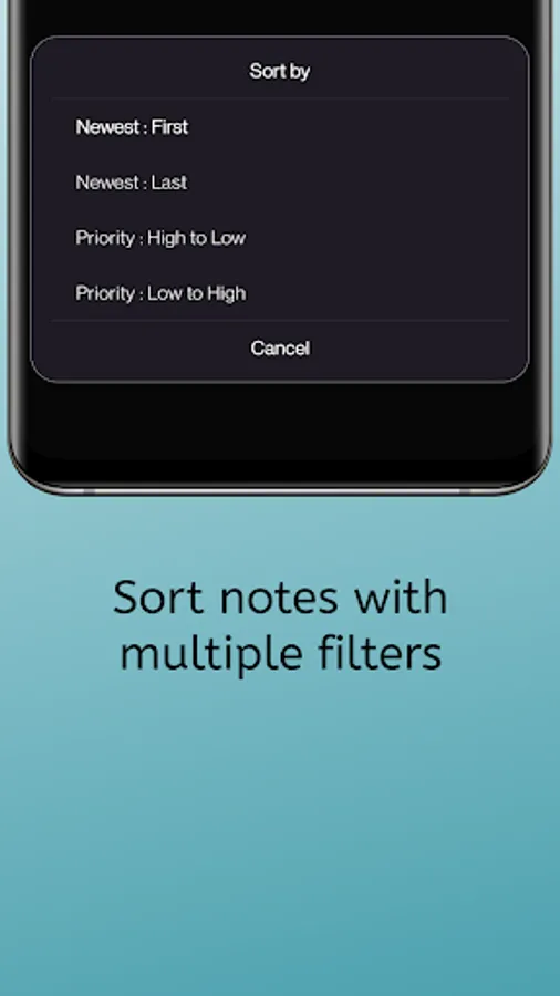 . Sorting allows user to find Notes quickly and easily. Different sort modes are available in filters, like display notes newest first, high priority etc.