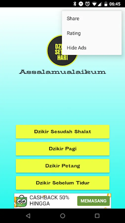 On this occasion I can bring the application dhikr every day according to the Sunnah of Prophet Muhammad sallallaahu 'alaihi wa sallam that contains the dhikr after prayers, dhikr morning and remembrance evening that inshaAllah will be a reminder, especially for yourself and loved ones, and may also give good for Muslim brothers.