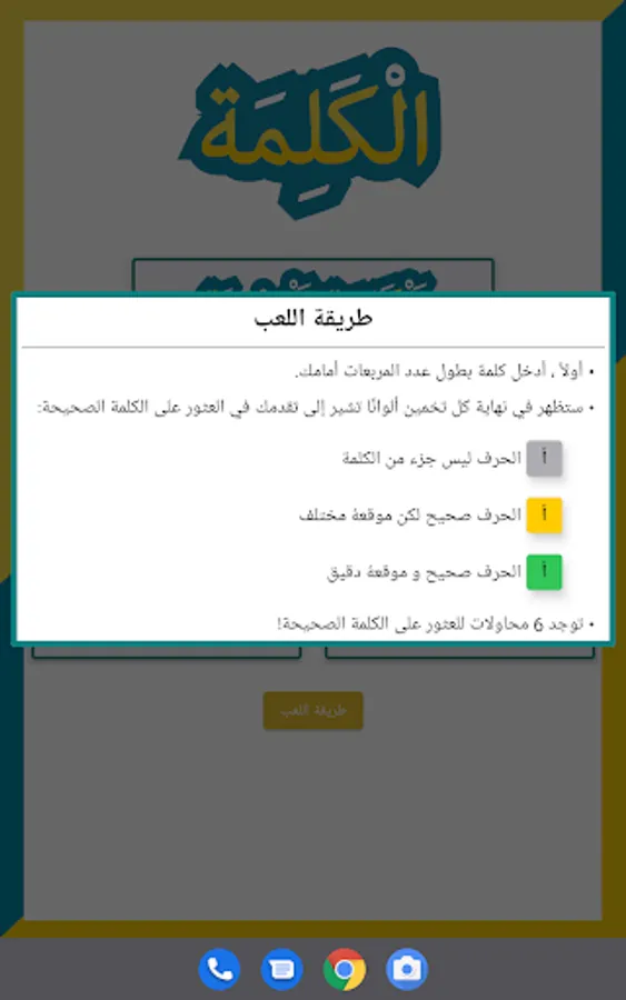 You must find the correct word, you only have 6 attempts.