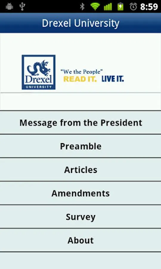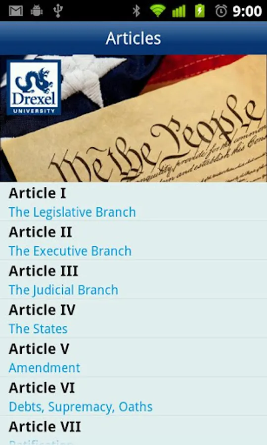 The Drexel University U.S. Constitution App is targeted for use by incoming freshman to the University but is open for anyone to use. Through this new electronic initiative created by the Office of Government and Community Relations, the Center for Civic Engagement and the Goodwin College of Professional Studies, you will have the opportunity to learn more about the history of the constitution and view of it.