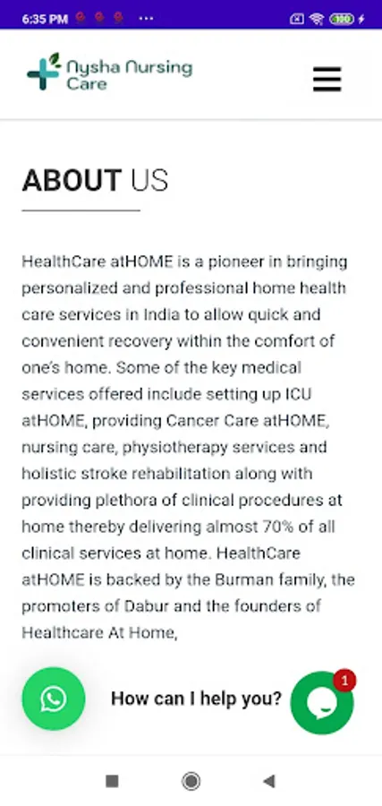 HealthCare atHOME is a pioneer in bringing personalized and professional home health care services in India to allow quick and convenient recovery within the comfort of one’s home. Some of the key medical services offered include setting up ICU atHOME, providing Cancer Care atHOME, nursing care, physiotherapy services and holistic stroke rehabilitation along with providing plethora of clinical procedures at home thereby delivering almost 70% of all clinical services at home. HealthCare atHOME is backed by the Burman family, the promoters of Dabur and the founders of Healthcare At Home,