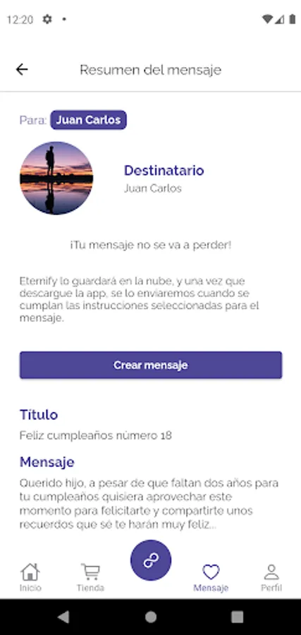In our application you can create "sealed envelope" messages for those you love so much. Eternify will store them securely and deliver them when your delivery instruction is met, even if you were no longer present at that time.