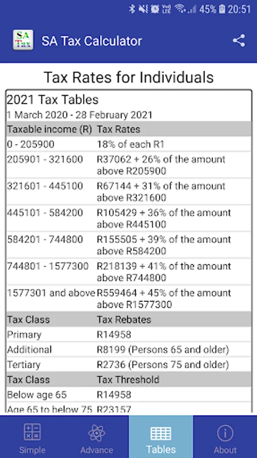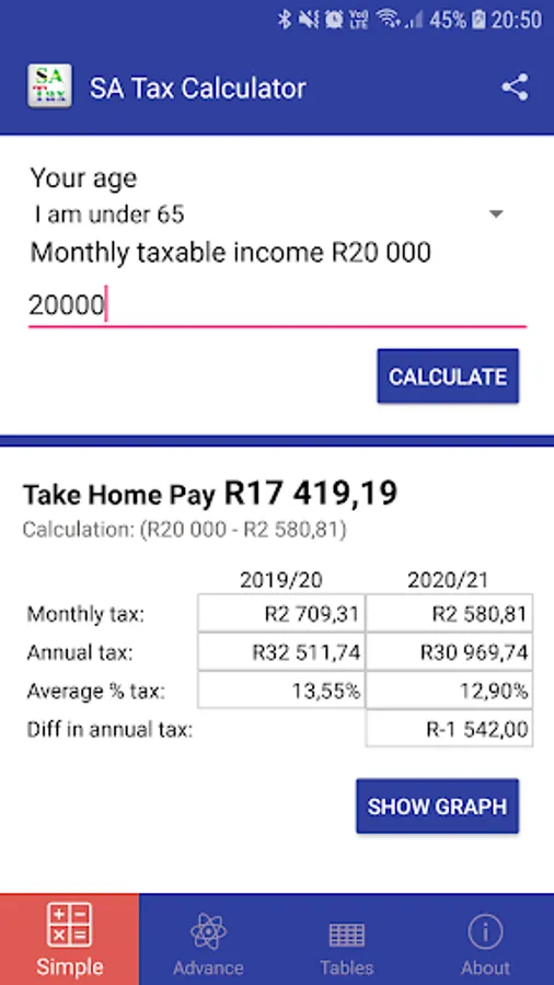 A simple Income tax / Net Income calculator for South Africans. Try the South Africa Tax Calculator!