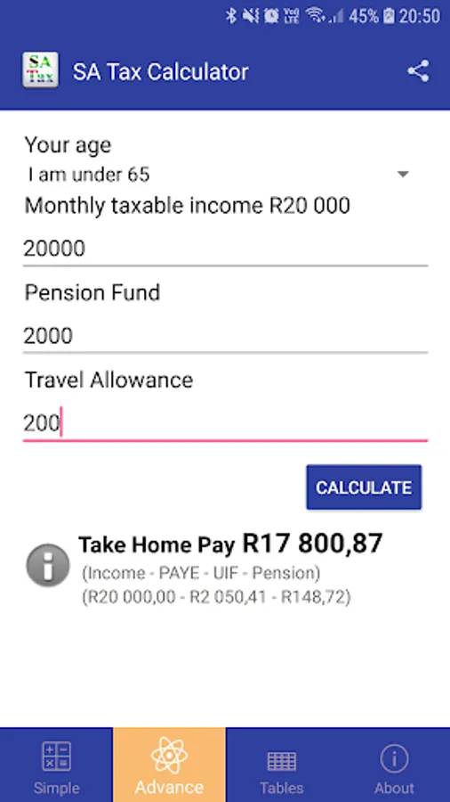* Advance calculations that include Pension Fund, Travel Allowance and UIF