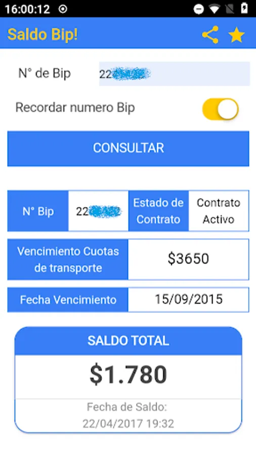 With this application you can see the balance of your card bip or national card student (TNE), and not run out of balance, plus lets you keep the card you frequent so that when you launch the application automatically show you the status of your card.