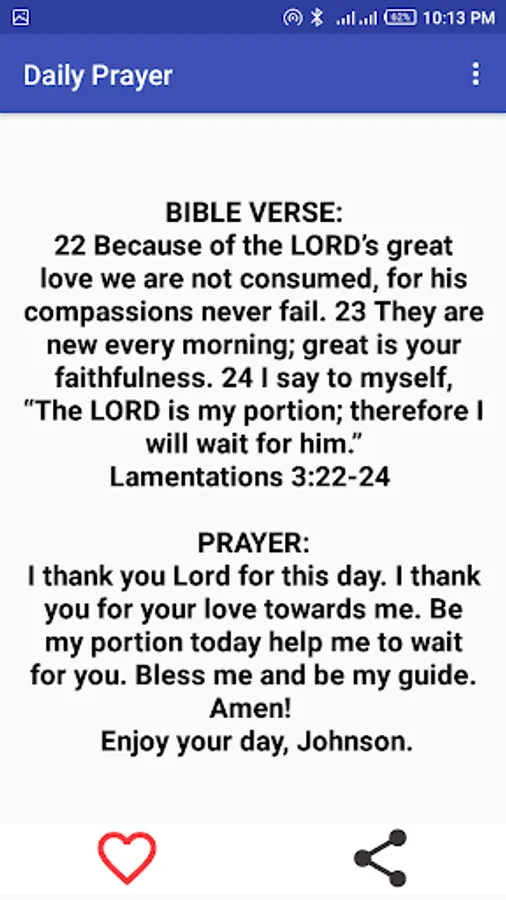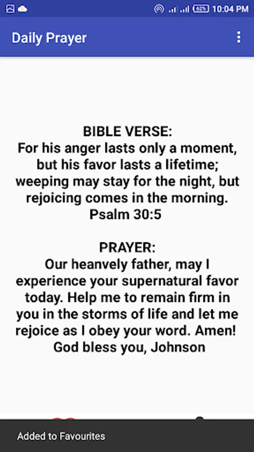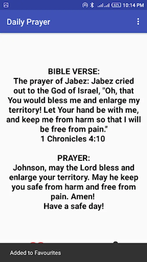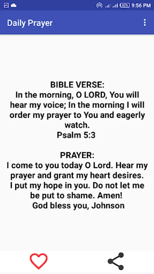 Users are able to share the Bible verses and prayers with others and add the prayers to their favourite list. This is a powerful prayer app and highly recommended to everybody. Thank you. God bless you!
