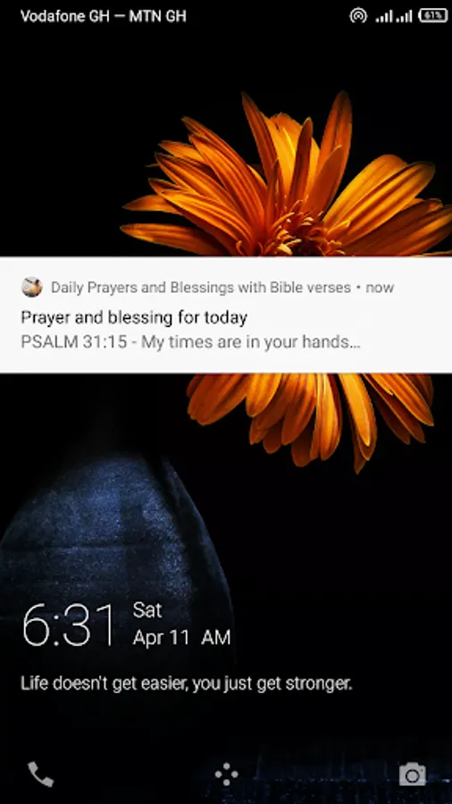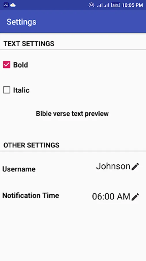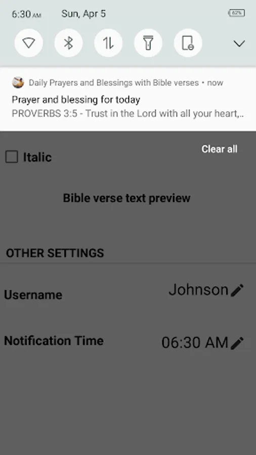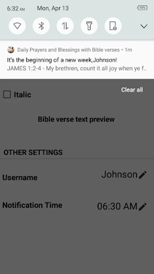 It sends a daily Bible Verse with prayer and blessing to users at the user's preferred time.