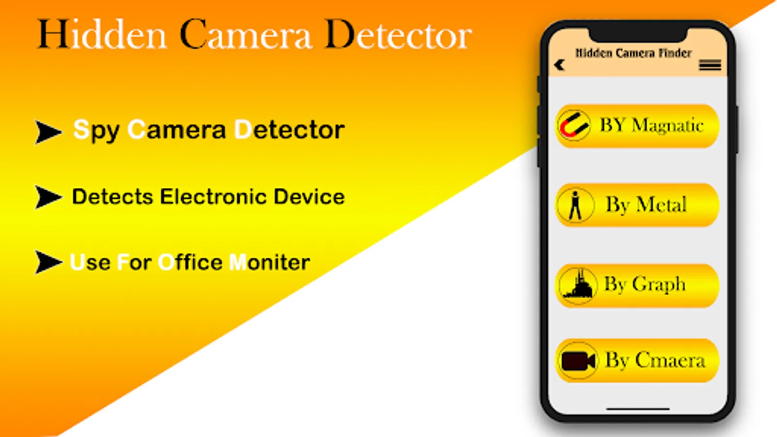 Hidden camera detector app is android application that detect hidden camera around the some area like hotel, private place, bus station and any other place. The hidden camera detector application will be detect any hidden devices and hidden camera. Hidden camera detector app move any of those area place where you have some doubt. In this app have a lot of feature to detector such of those hidden camera. Hidden Camera application have sensor and detect those hidden camera which have sensor. When the hidden camera is detected the app will be show value on the graph as well as in the digital value. Hidden camera work and detect hidden devices when it is in the bed room, shopping rooms, shopping mall, and drawing room and try room. Amazing and very interesting tools and feature of hidden camera detector app.