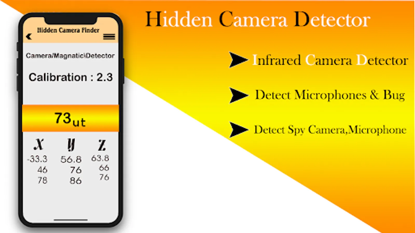 Note: Hidden camera detector work on those mobile who have magnetic sensor. If the sensor is not in your mobile. The hidden camera detector application will be not work properly.