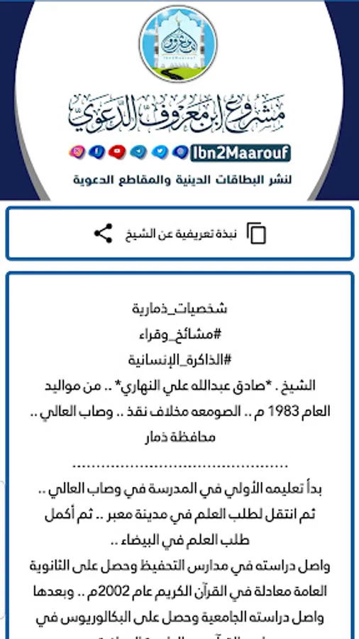 Sheikh. * Sadeq Abdullah Ali Al-Nahari* .. Born in the year 1983 AD .. Sowma Mikhlaf Nakhz .. Wesab Al Aali .. Dhamar Governorate