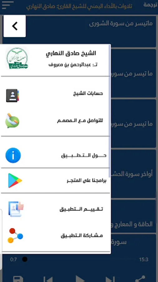 • Participated in the program Khatma Quranic readings on Quran Radio in the State of Kuwait in the seven frequent readings