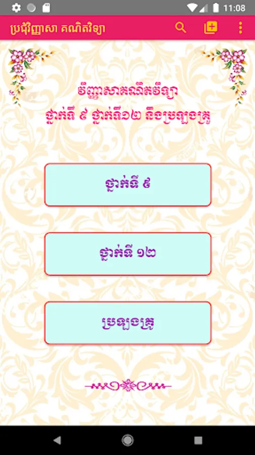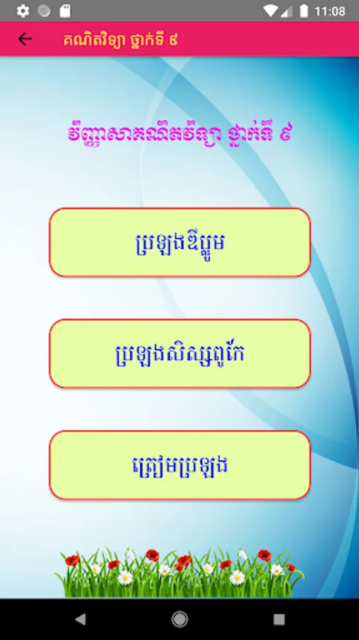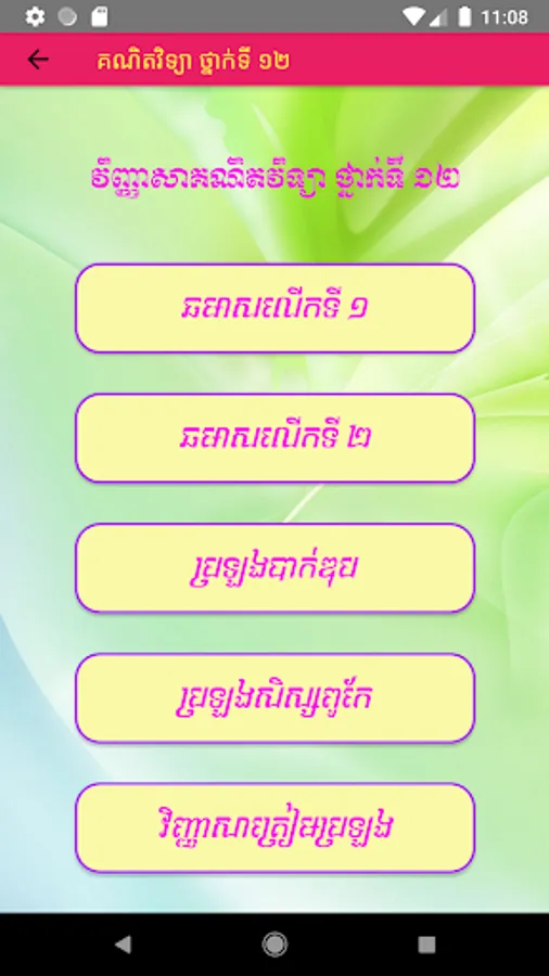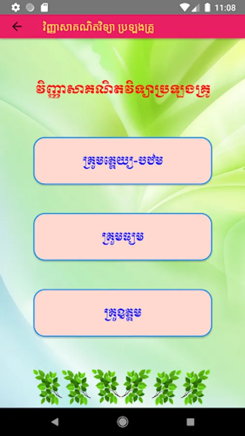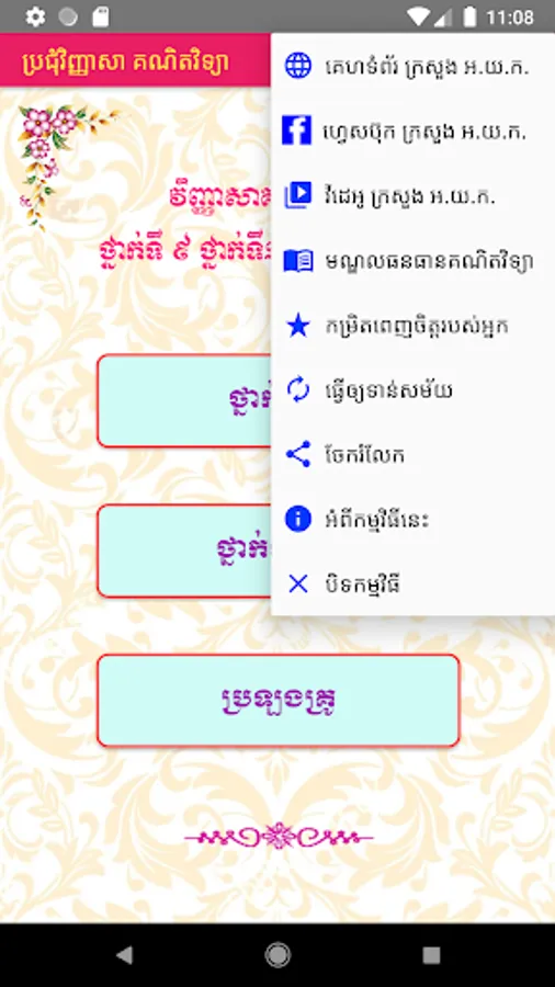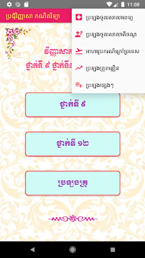 This app contains a lot of tests in Khmer ( Cambodian language).