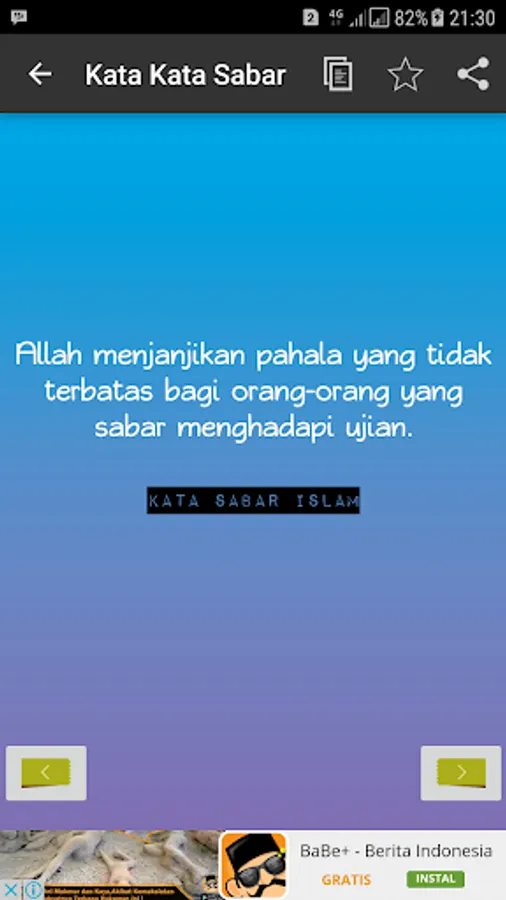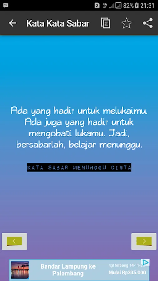 Words patiently in the application is not just beautiful words mempu make anyone who sees it become stunned. But these words indicate the conditions where patience becomes a tremendous force needed in this life. For those of you who want to wait in life that perhaps you think hard, then the words in the app you can make motivation and serve as a guide to life.