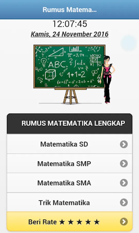 Mathematical Formulas Complete an application in which there are all the mathematical formula for elementary school (SD), junior high school up to the mathematical formula. Starting from the formula geometry, Flat, numbers, and others.