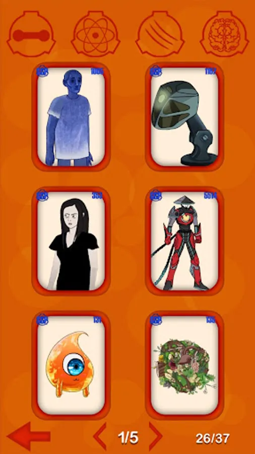 Each SCP card has 4 characteristics that are used in battles. At the beginning of the game, you will have 8 SCP cards open. Earn points to use them to get new cards and increase the collection. Each card corresponds to a separate SCP object.