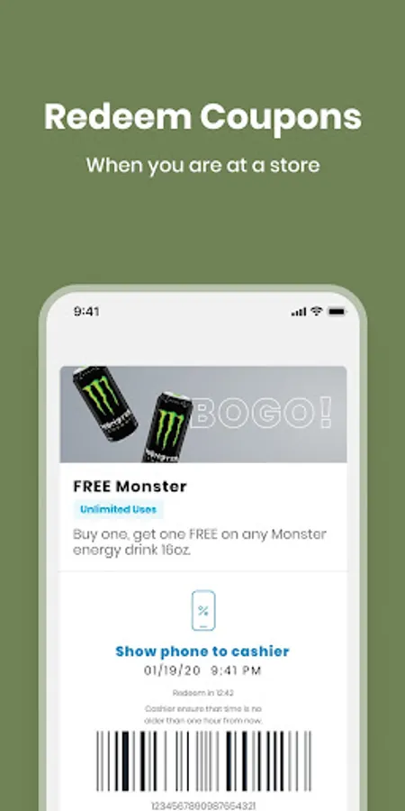 Simply tap the orange redeem button and show your phone at purchase to redeem your coupons.