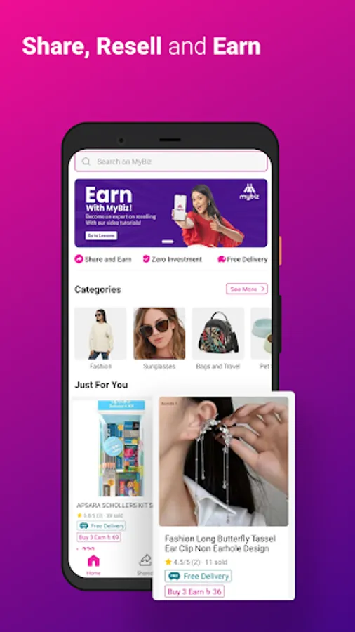 Through this app we are trying to make opportunities for Micro-entrepreneurs and women to become Financially Independent. A Reseller can share products listed on the MyBiz app with their network though WhatsApp, Facebook, Messenger and earn a profit with every sale.