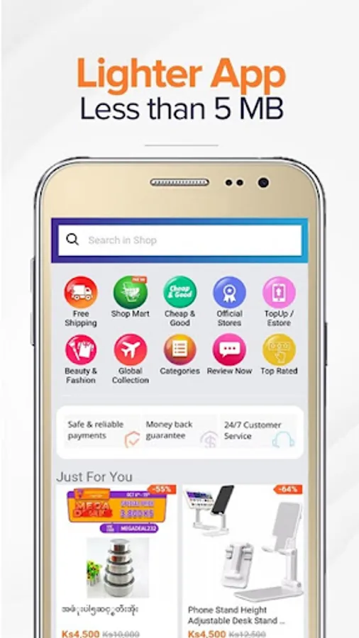 Shop Lite App is the simpler version of the main app. Shop Lite App is fast and data-efficient app that works on slow networks, conserves data and comes in 5MB package. It saves saves space on your phone and is recommended for smartphones with 2GB RAM or below. You can also save data on the go as it can also connect on 3G, 4G networks and above.