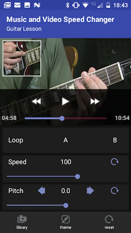 All settings (speed/pitch/loop points) automatically saved for each song or video.