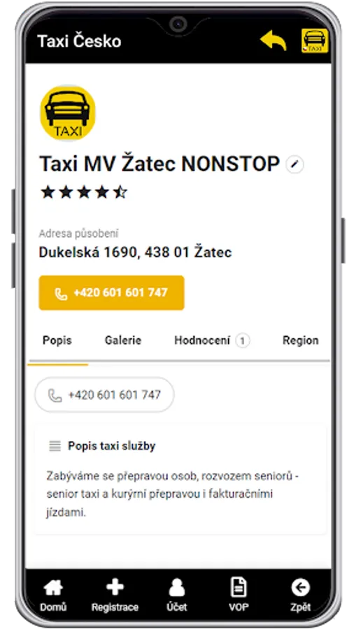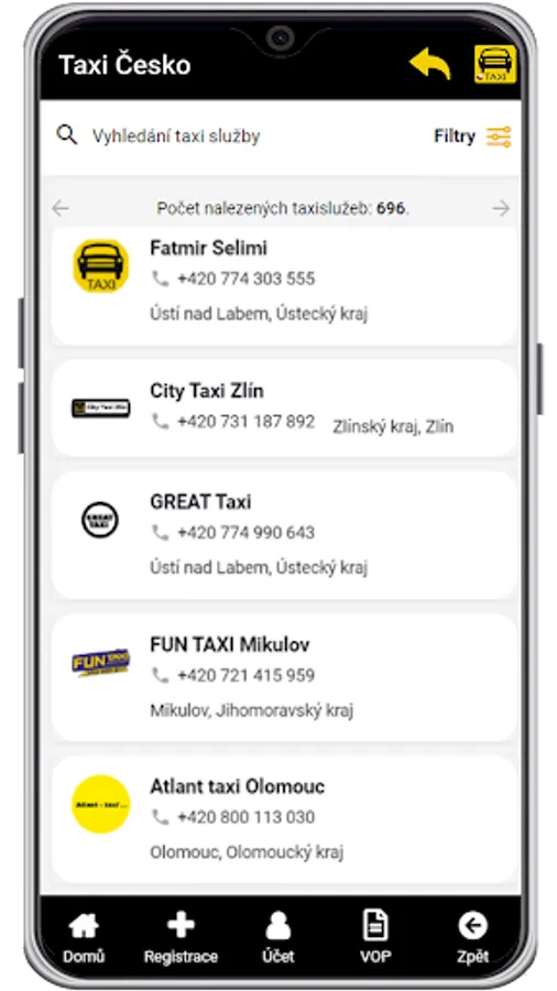 TAXI Czechia is an application for all of us. Database of TAXI services from all over the Czech Republic in one application. Download the free application to your phone and you will never have a problem looking for a phone number or other information about your favorite TAXI service.