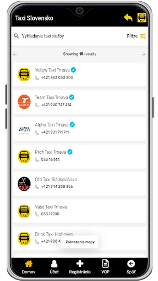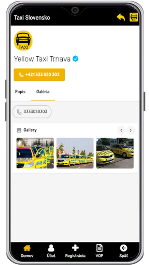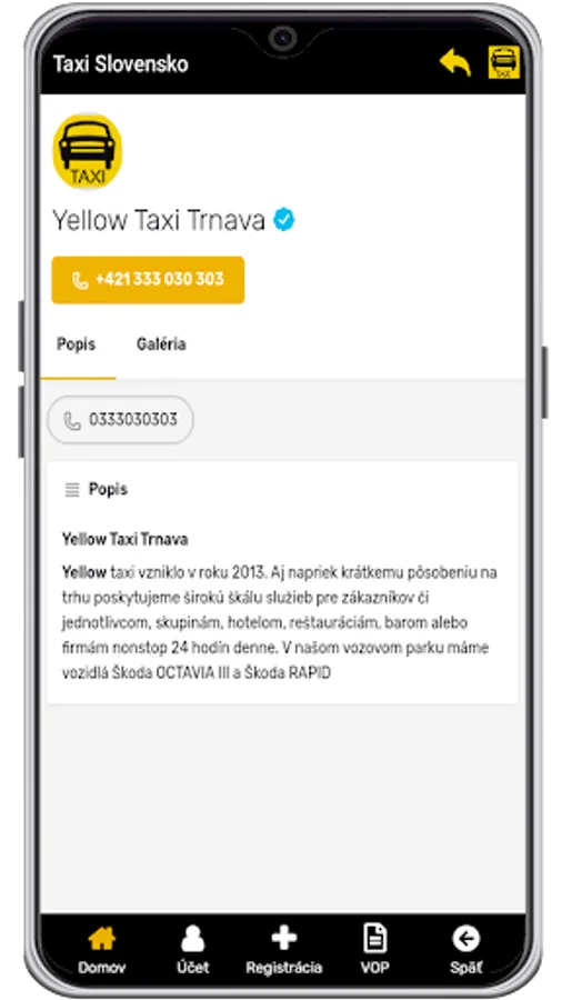TAXI Slovakia is an application for all of us. Database of TAXI services from all over Slovakia in one application. Download the free application to your phone and you will never have a problem looking for a phone number or other information about your favorite TAXI service.