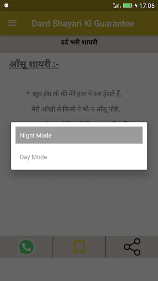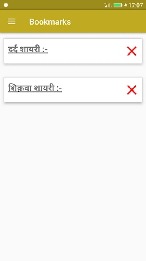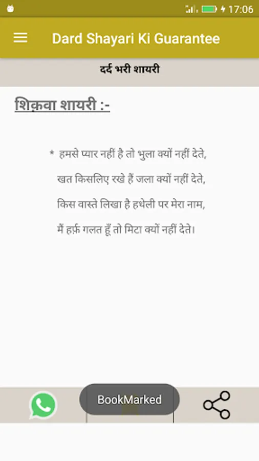 This app has huge, latest collection of "Shayari" in Hindi Language.