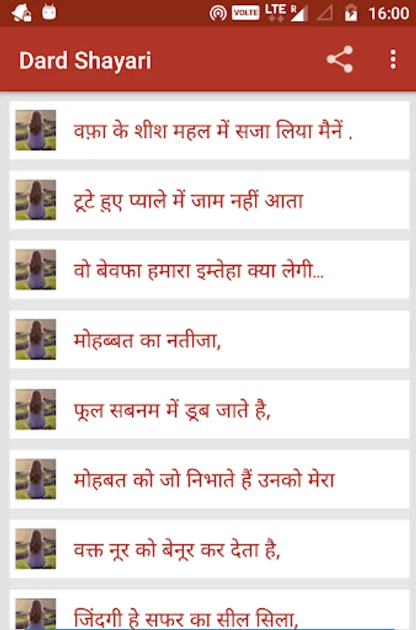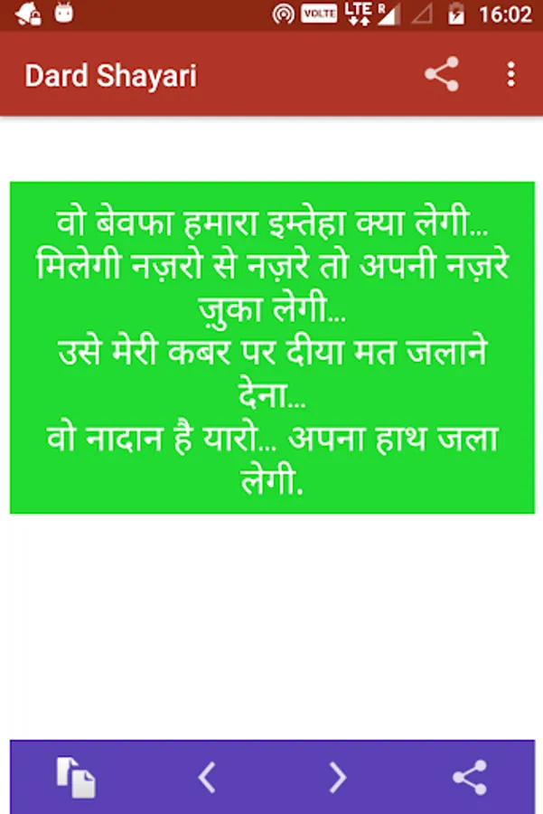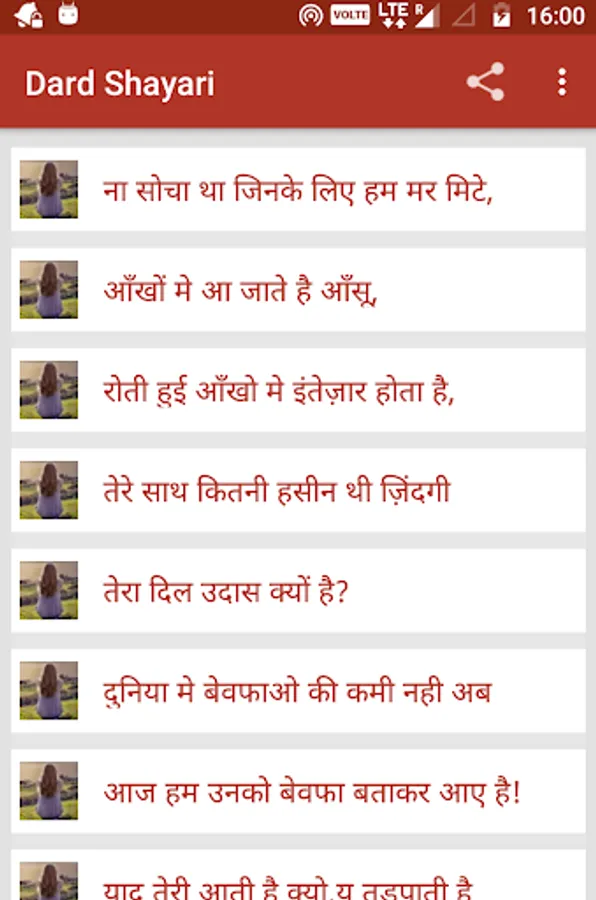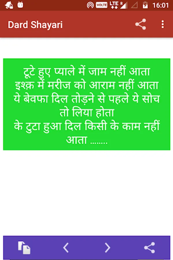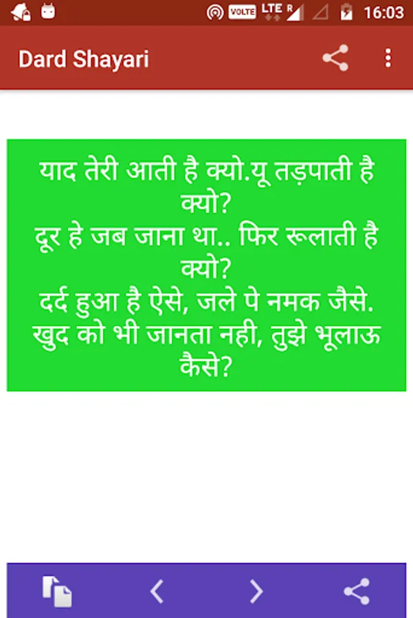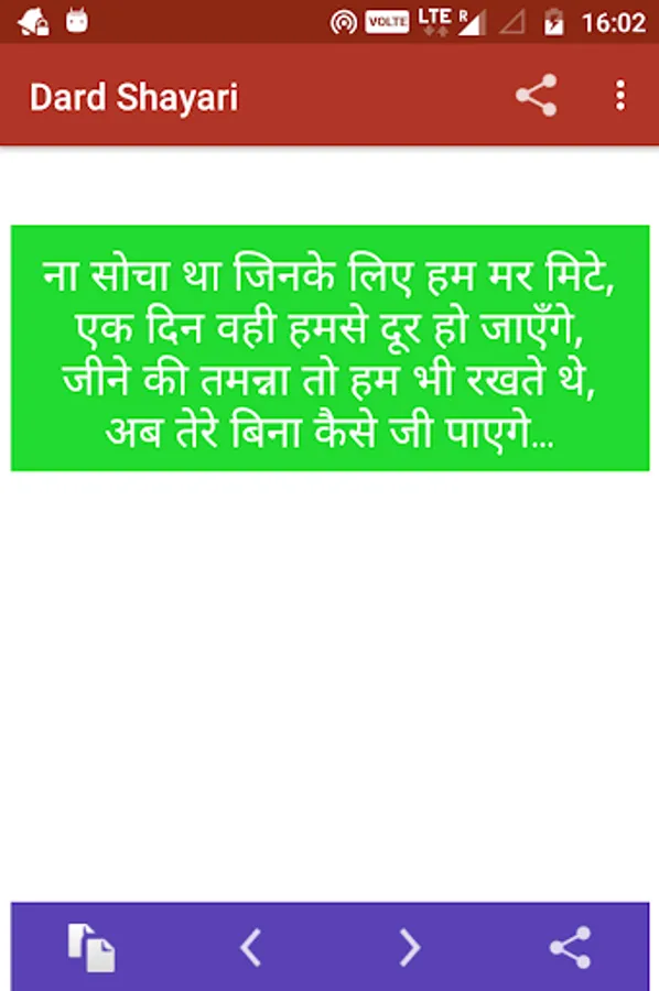 Shayari is one of the best thing that is used to place your emotion to anyone .This app is one of the sad shayari hindi collection also its totally free and no internet required . Use this amazing unlimited sad shayari and share to emotion feeling to someone .