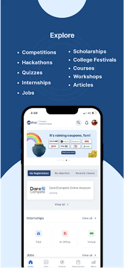Unstop (formerly Dare2Compete) is a global platform that caters to all the elements/needs of the ecosystem that comprises students, professionals, institutes, and companies as stakeholders.