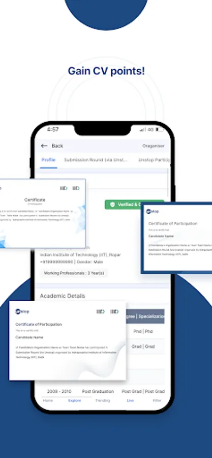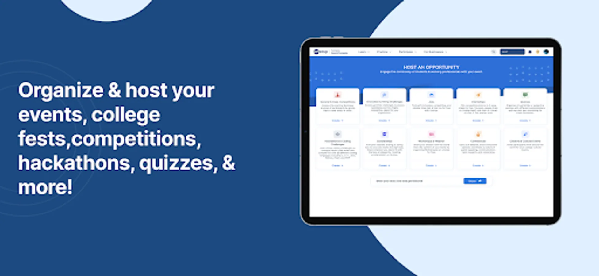 Unstop provides opportunities to students and professionals across all domains to engage with institutes and companies by participating and competing in intellectual gamified engagements like Innovation and Case Challenges, Hackathons, Quizzes, Business Simulations, etc. to showcase their talent and get hired, recognized, and rewarded.