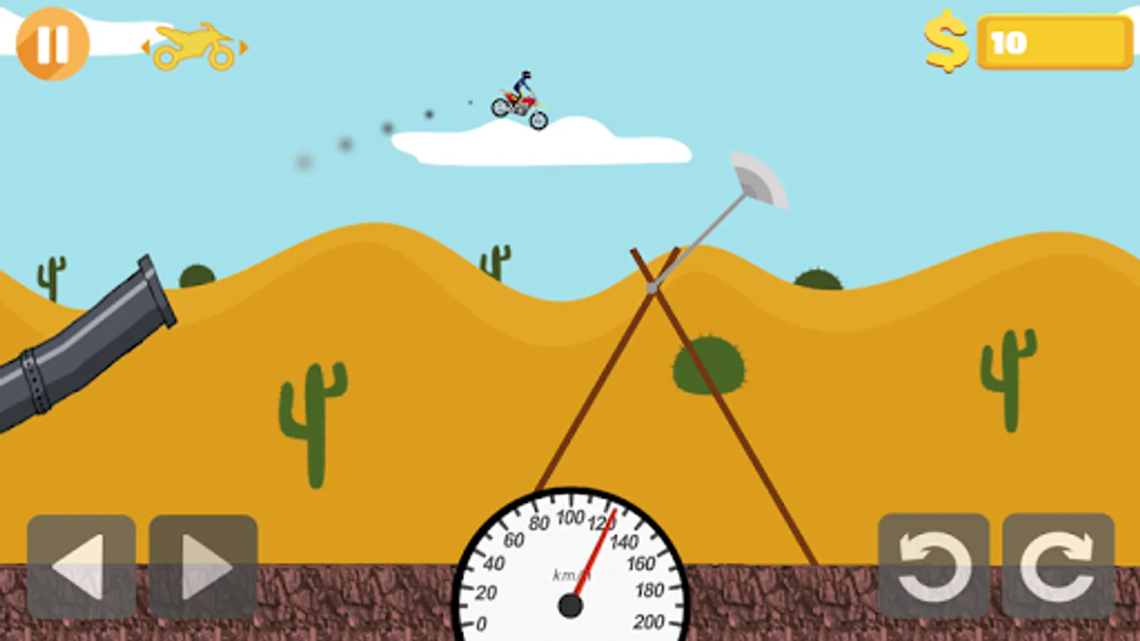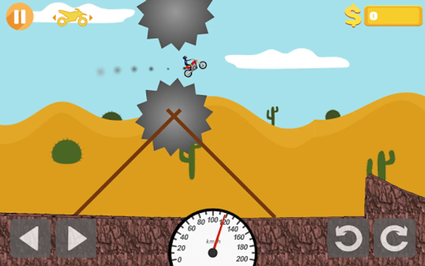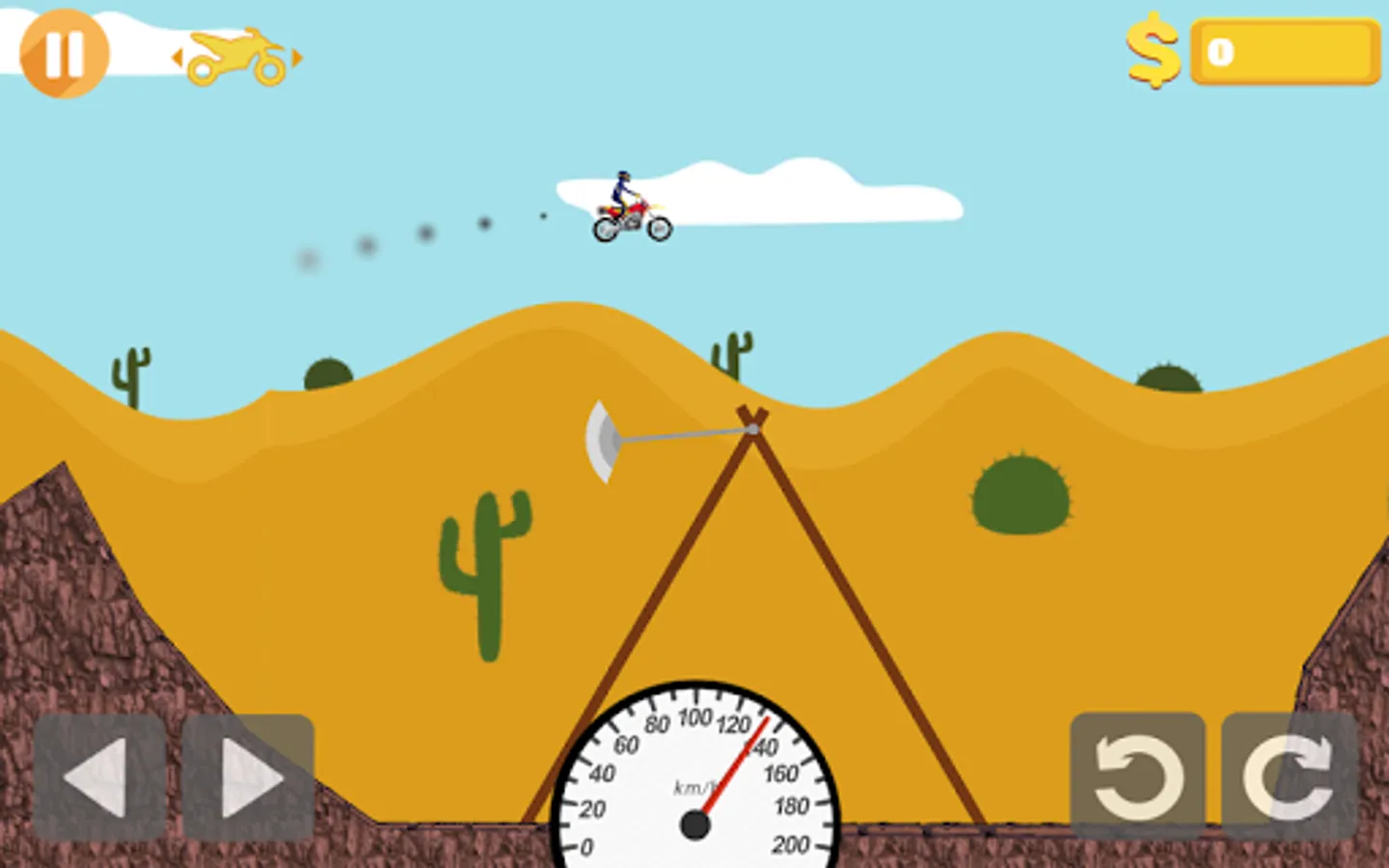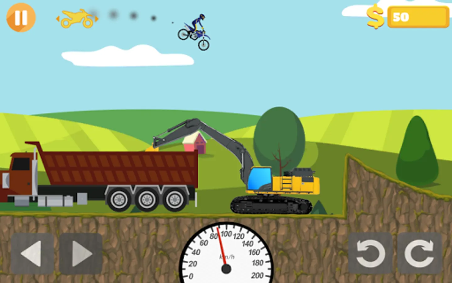 Ride motorcycles on the hills and jump over cars, trucks and other obstacles, avoiding crashing. Perform stunt: wheelies, backflips and frontflips to get bonus points. Unlock faster motorcycles to finish all levels.