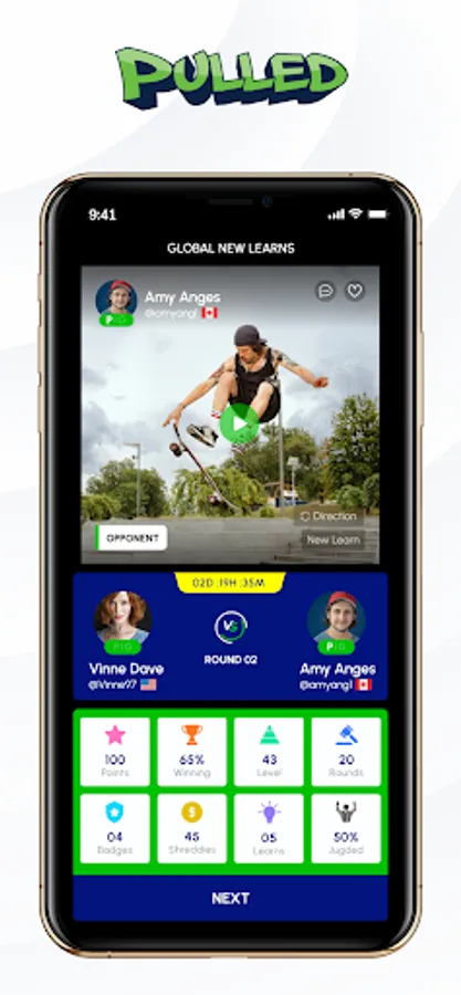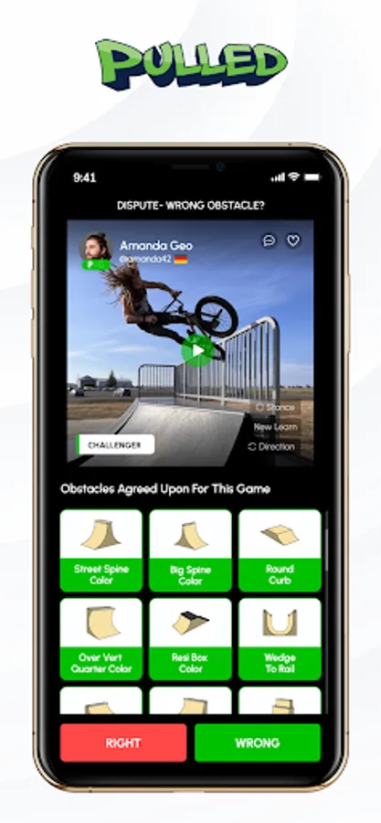 In this game of bike, skate or scoot, players can’t repeat a trick unless it’s on a different obstacle. Any disagreements during this skate, scooter or bike contest are voted on and resolved by other app users. The video feed is used to determine who’s at fault. The player voted against, receives a “fail.” Once this game with dirt jumps has concluded, you can share a compilation of your action sport game to any social media network or even add it to your own profile in Pulled for people to enjoy.