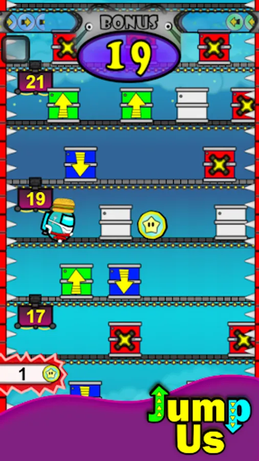 Jump and collide with the wall, that will make you turn, to collide with the other wall, wait, now the power-up substance comes in a parachute, hit the boxes and they will propel you slightly upwards, if you collide consecutively, you will manage to get high, some boxes have substance X don't let them touch the ground, or they will destroy it and you will fall into the void, touch the walls to get points and increase your global record.