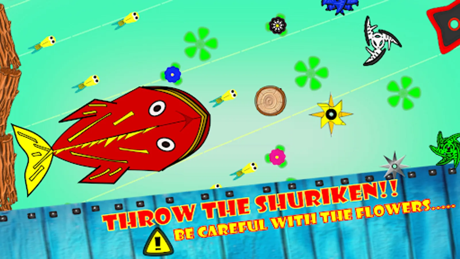With the shuriken that you have bought, you will have to destroy all the logs that come near your dock, you have to be prepared because a giant fish will come out at any moment and if you reach the end you will see the turtles, which with their shells will be immune to your shuriken.