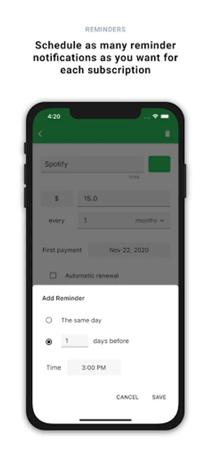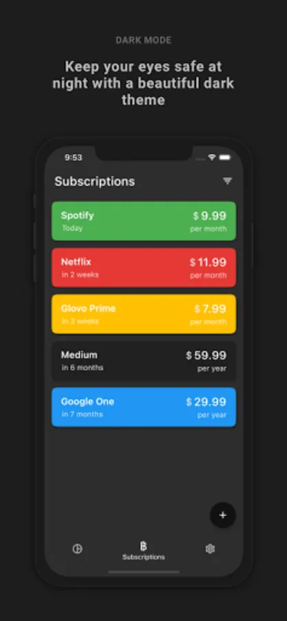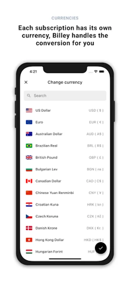Billey is a simple, handy tool to keep track of your subscriptions and stay relaxed