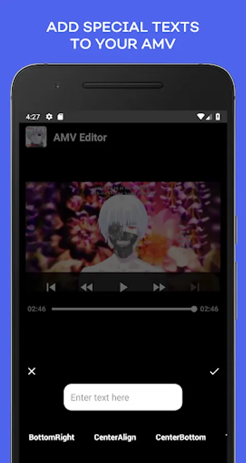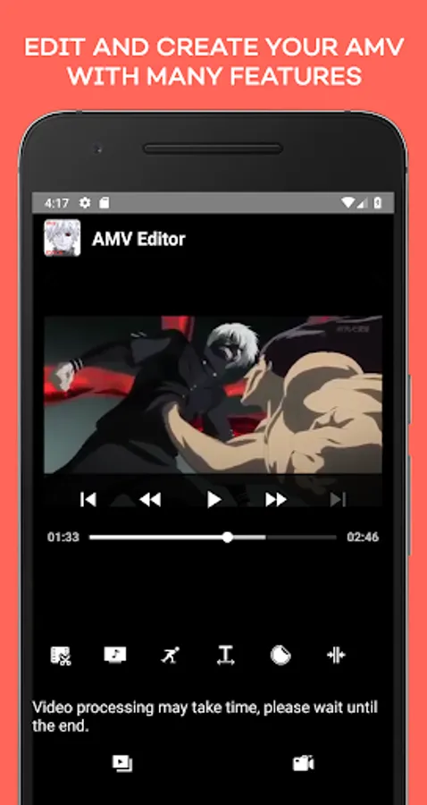 Note: This app is only a tool. It's not an official app. You cannot download any video or music via this app. You can only edit amv that is on your phone.