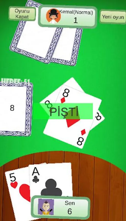 - If you throw the card from the same card with only 1 card on the floor, you do PİŞTİ. And
