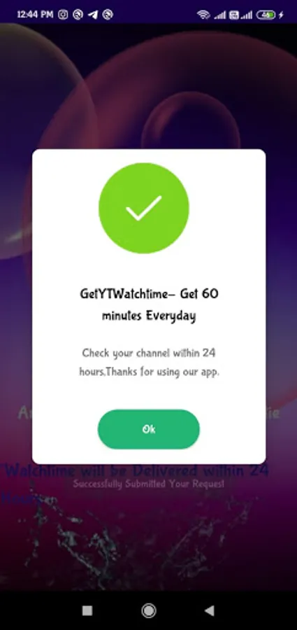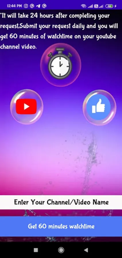 use this app and get 60 minutes of watchtime on your videos every single day by using this app daily,so use this app and enjoy, if you will not get so you can contact us by youtube and email.